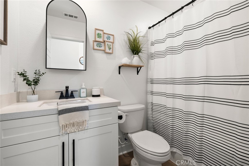 This one of a kind masterpiece is completely remodeled with high end touches making this 3400 sqft property a must have! The home is almost brand new, having been built in 2021 and featuring 5 bedrooms, 3 baths, an office and giant loft, on a cul-de-sac with solar! As you enter the property you are greeted by artificial turf, gorgeous drought tolerant landscaping, an extra wide driveway with access to a 3-car tandem garage. Inside the stunning home you will find high ceilings, recessed lighting, high baseboards, LVP floors throughout, and an open concept floor plan. The first floor features a giant Great Room boasting a custom olive-green shiplap fireplace featuring a floating mantel and sconce lighting, large windows allowing tons of natural light with bamboo shades, a dual slider and open to the gourmet kitchen and dining area. The kitchen is appointed with white quartz counters, eat-up island, stainless steel appliances, a double oven, farm sink, pot filler, convection microwave, pendant lighting, custom black chandelier, tons of storage, a massive walk-in closet, upgraded mudroom with a built-in hall tree, and access to the garage. Off the kitchen is a custom office boasting French doors, accent wall with woodworking, moody paint, and a custom bookshelf from floor to ceiling. The main floor also features a full bath boasting a single vanity and tub/shower combo. The main floor bedroom is very spacious with plush carpet, ceiling fan, and walk-in closet. The tall ceilings and gorgeous black chandelier lead the way up to the second story via an open slatted staircase with upgraded stair rails and LVP floors that drop you off into the large loft boasting custom cabinets with a wood counter & wine fridge. The second-floor features 3 more secondary bedrooms, all spacious with carpet, 2 with standard closets and one with a walk-in closet. The large laundry room is appointed with a free-standing wash sink and storage. The master bedroom is massive with gorgeous views and attached bath boasting custom tile, separate sink areas, custom mirrors and lighting, free standing tub, honeycomb backsplash, black framed shower, and huge walk-in closet. The entertainers yard boasts a patio cover, artificial turf, built-in fire pit, above ground spa, trees that will mature for privacy and many entertaining areas. The community features pools, spas, sports courts, hiking & biking trails, skate park, elementary and middle school steps away, and between the 15 & 215 fwy.
